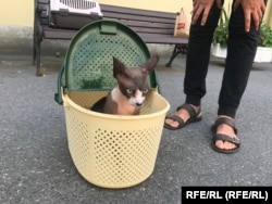 Макс сидит в корзине для пикника. Виталик планирует вывезти его в Германию, куда удалось выехать соседям. Контакт с ними оборвался из-за постоянных обстрелов и рухнувшей сотовой связи в Мариуполе.